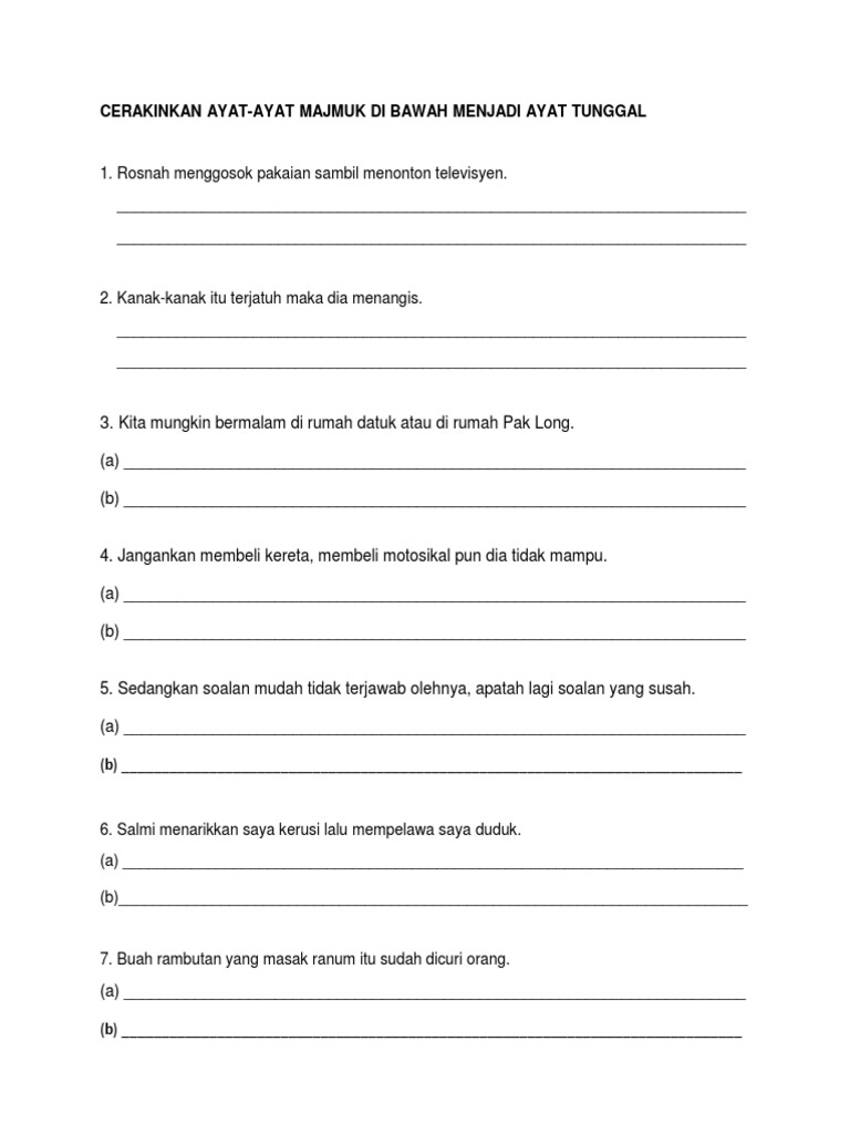 Contoh soalan spm cerakinkan ayat majmuk contoh soalan spm cerakinkan nilai contoh soalan spm cerakinkan nombor contoh soalan spm cerakin. Borang Soal Selidik. Contoh latihan subjek dan predikat pt3 bahasa melayu dan jawapan.